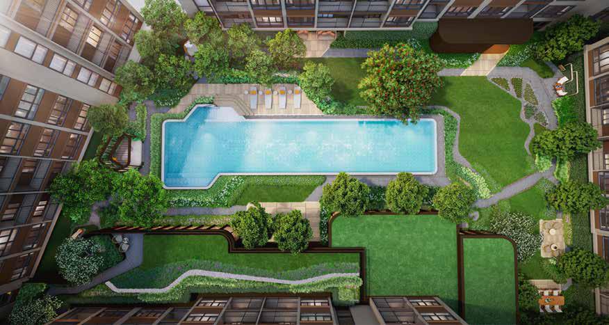 A swimming pool amidst shady nature like an oasis in the heart of the project lets you lost in reverie while relaxing with the flow. Or else, basking in the sun on daybeds by the pool under the shade of trees is also an engaging activity that will recharge your energy in another way.