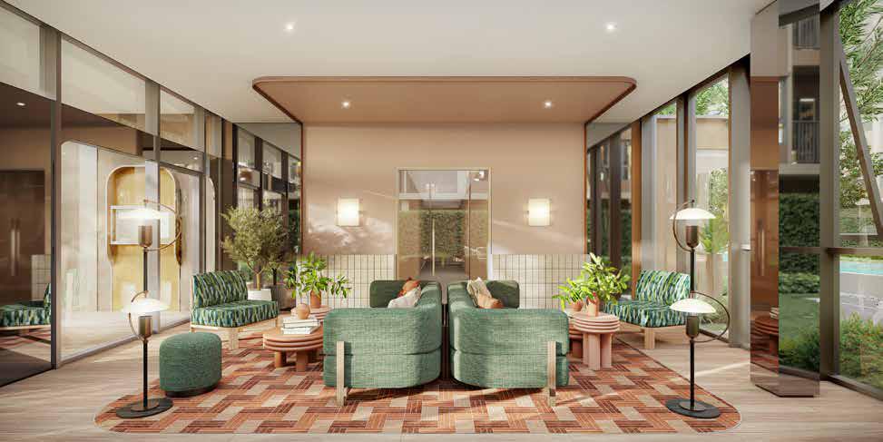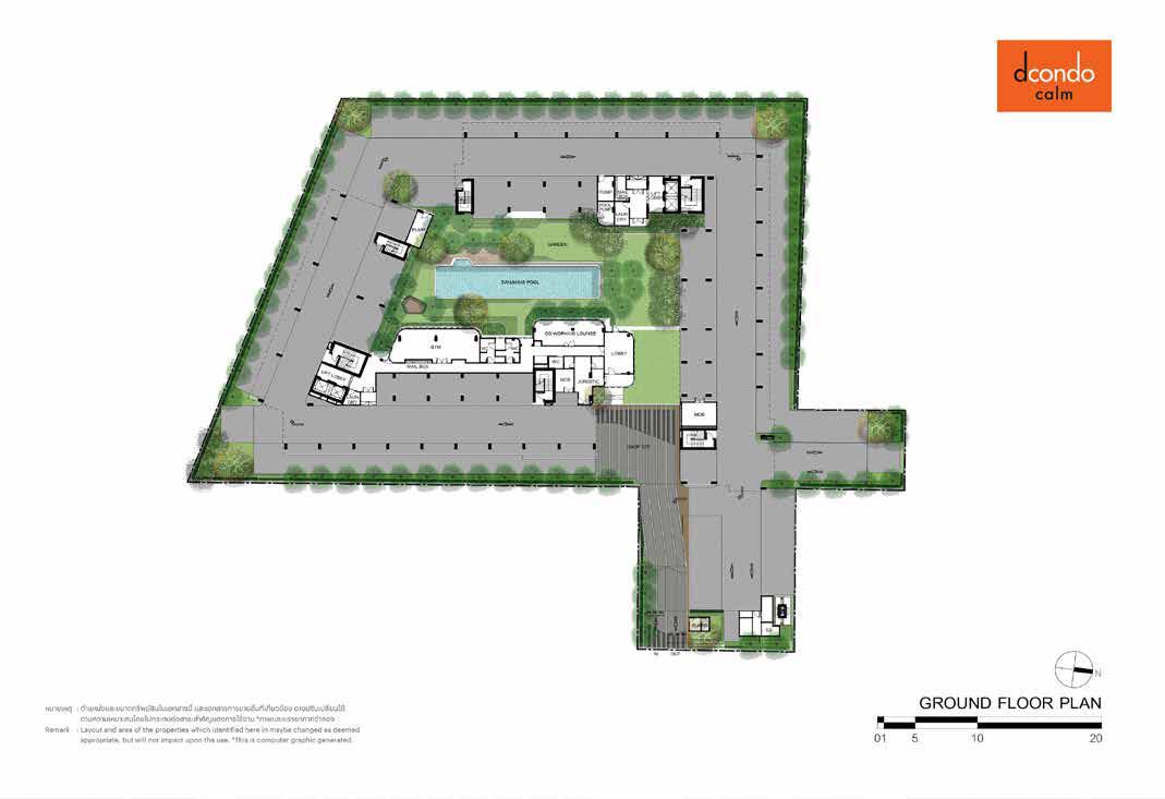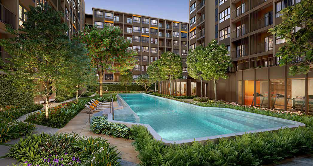 Allocate this place to be a summer house resort-like condominium hiding you from the chaos outside. The colors and lines of the selected materials blending in with nature induce the feeling of friendliness and coziness to make you feel more relaxed along the green space. A walking path with organized seating among shady bushes is deliberately constructed to connect the indoor and outdoor areas synchronically. Prominently, hidden nature within the building area encourages you to discover a private relaxation experience. Soon you'll find out that it's quieter than anywhere else you've ever been.