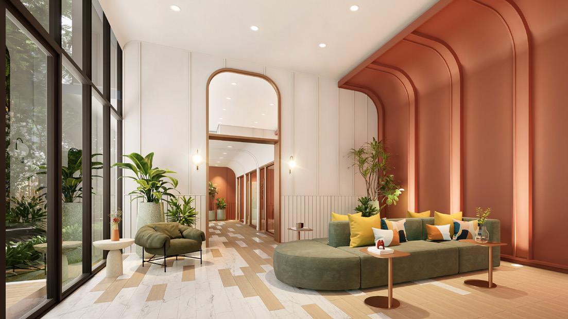 A welcoming zone designed with vibrant colors and style, inspired by the beauty of sunrise.