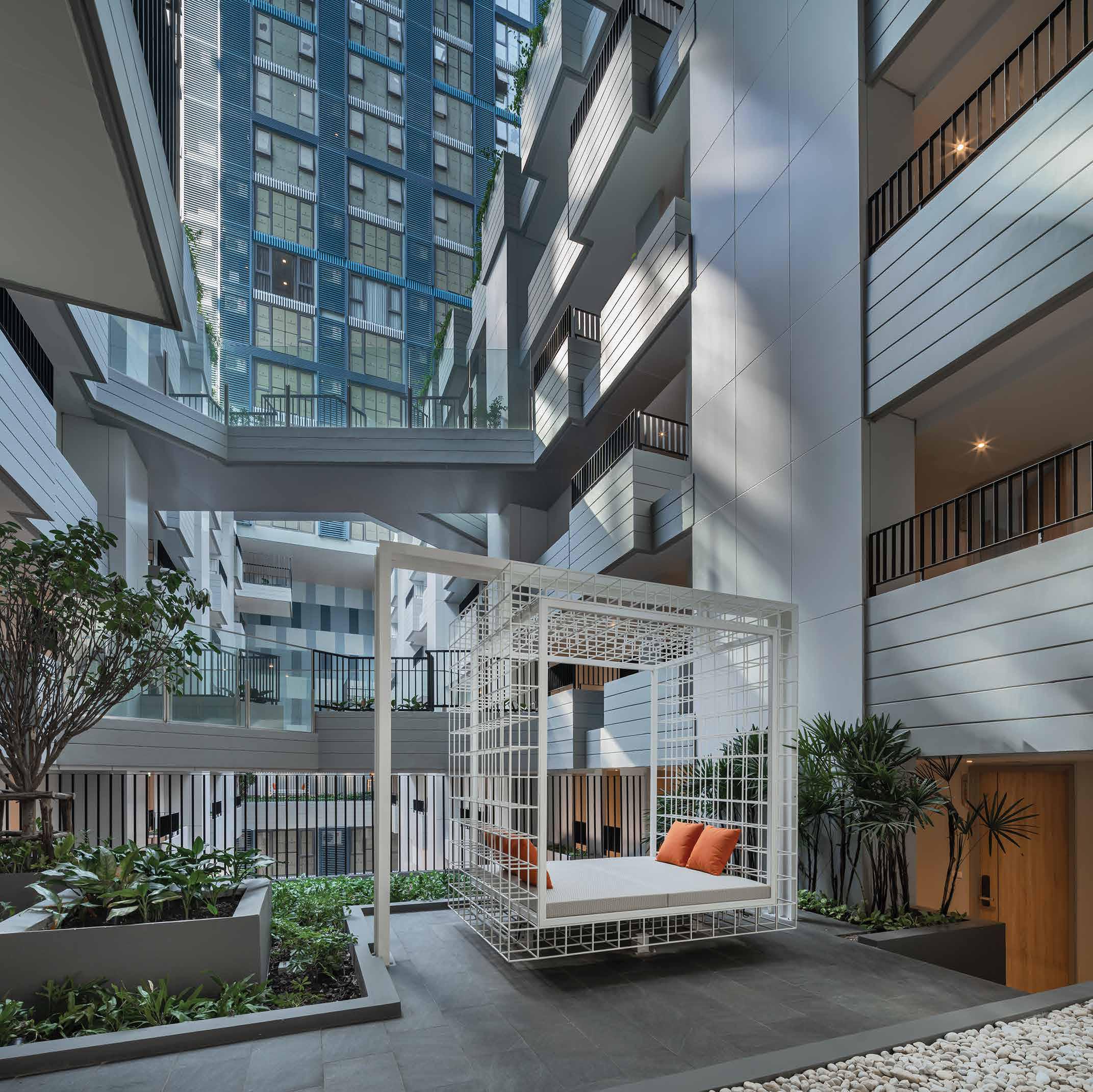 XT PHAYATHAI TAKES SHAPE AS A NATURAL HAVEN IN THE MIDDLE OF THE CONCRETE JUNGLE, BY DESIGNING AN ARCHITECTURAL FORM FILLED TO INSPIRE ALL CREATIVE MINDS ALIKE. TRANSLATED INTO INTERLINING METALS WEAVED TO FORM A MAN-MADE BIRD'S NEST, REPRESENTING A WARM WELCOMING HOME