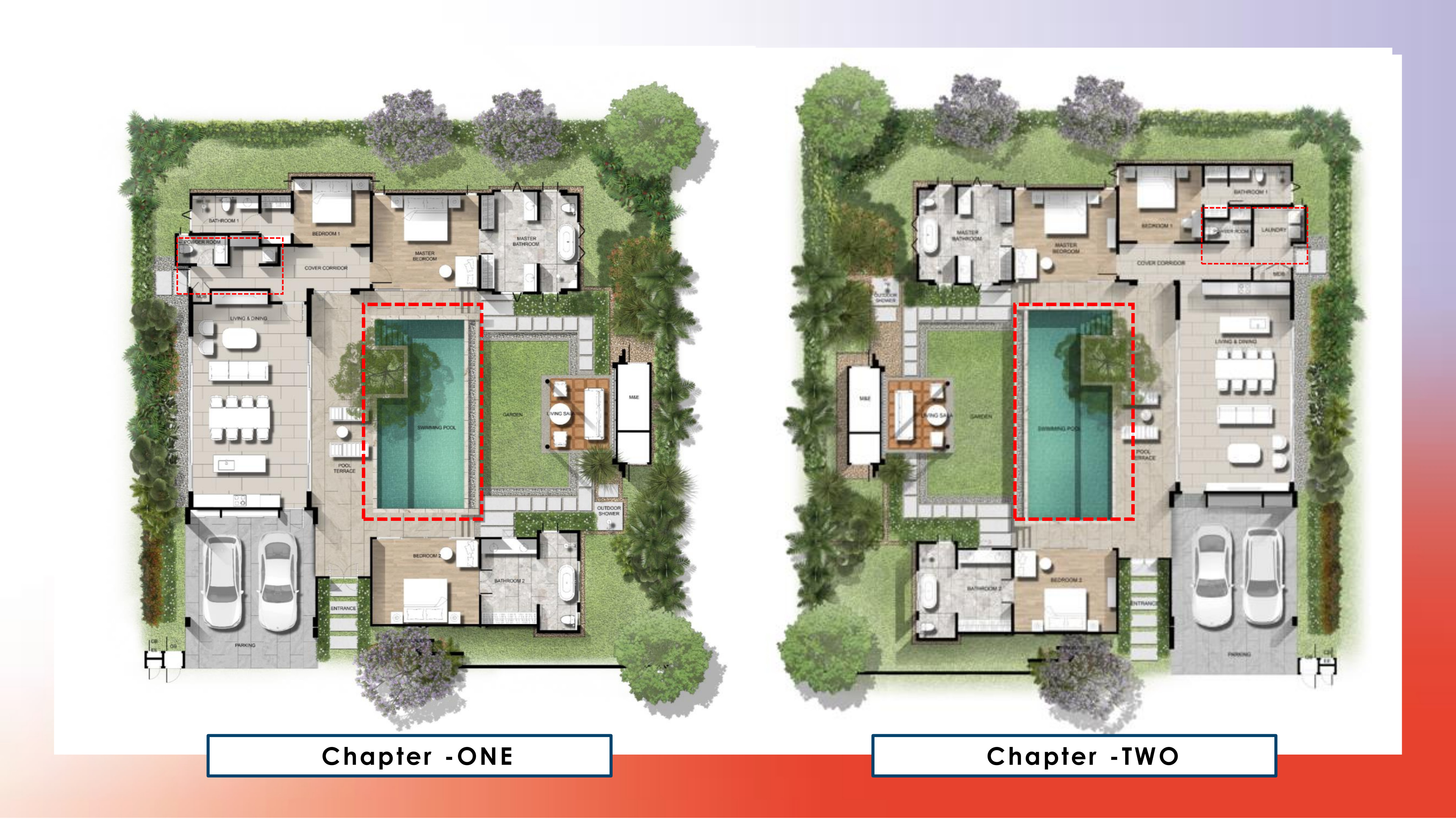 Plunge into a sprawling swimming pool where art and design converge. Patterns crisscrossing the pool floor reflect the beauty of the natural surroundings, inviting you to fully appreciate every moment of relaxation. Experience a new dimension of relaxation with a dual-level swimming pool, where tranquil laps come with panoramic, 360-degree views of the communal gardens.
